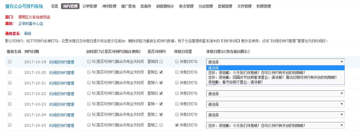 微信公眾號預約微信支付系統優化了休息日設置