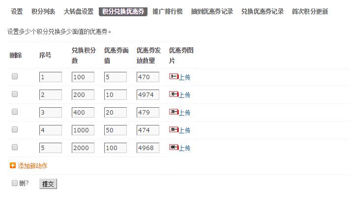 | 大轉(zhuǎn)盤游戲是圍繞積分和優(yōu)惠券展開,讓會員主動分享,以達到增加粉絲的效果,具體流程如下: 已關(guān)注的粉絲可通過分享頁面或者專屬分享二維碼給朋友或者朋友圈,朋友通過其分享頁面的二維碼關(guān)注公眾號后,即可得積分,積分可用于玩大轉(zhuǎn)盤抽獎游戲,也可以用于兌換優(yōu)惠券,優(yōu)惠券預(yù)約拍照時輸入券碼可減金額,用戶可查看其推廣的微信名稱列表。 后臺功能: 1、基本設(shè)置:大轉(zhuǎn)盤轉(zhuǎn)一次的使用積分,分享一個好友得到的積分?jǐn)?shù),分享頁面的標(biāo)題、描述及圖標(biāo)。 2、獎品設(shè)置:可抽中積分、不同金額優(yōu)惠券及沒抽中選項,可設(shè)置抽中的概率! 3、兌換設(shè)置:積分可兌換優(yōu)惠券,設(shè)置優(yōu)惠券兌換積分、優(yōu)惠券金額、優(yōu)惠券數(shù)量及優(yōu)惠券圖標(biāo)。 4、后臺展示用戶的積分、抽到的優(yōu)惠券記錄、兌換的優(yōu)惠券記錄,可根據(jù)手機號等查詢用戶的積分。 5、分享的頁面用戶可自行選擇是否添加自己的底片。 |