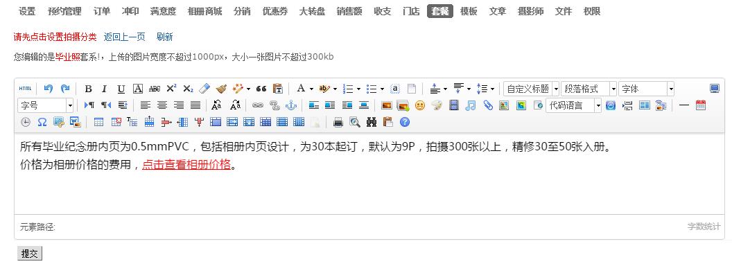 2018.6.11更新記錄1、首頁可以根據(jù)套系或者拍攝分類為入口,選擇分店后即跳轉(zhuǎn)到該套系或者拍攝分類2、套系描述增加了自定義描述套系內(nèi)容3、增加了隱藏組合套系功能。 ...